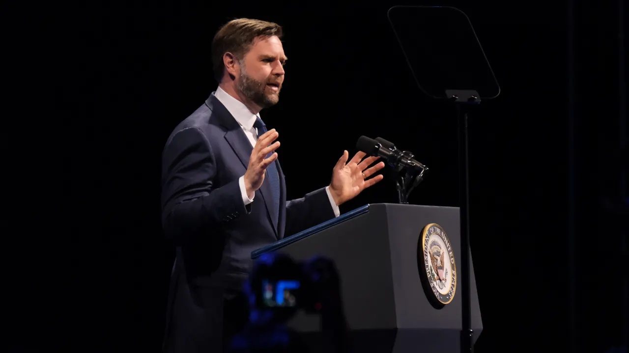 副总裁 JD Vance 出席比特币 2025 峰会。图片:Decrypt/André Beganski