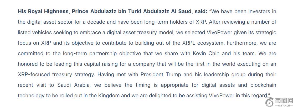 文章标题:沙特王子与特朗普会面后,纳斯达克上市公司 VivoPower 将购买并持有 XRP