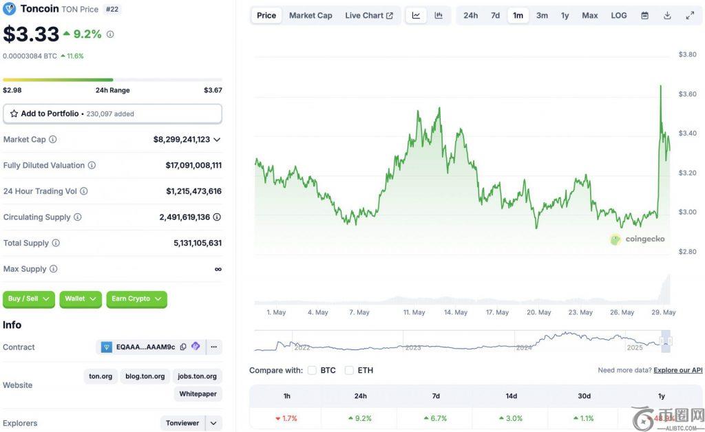 Telegram 与马斯克达成交易后,Toncoin(TON)飙升