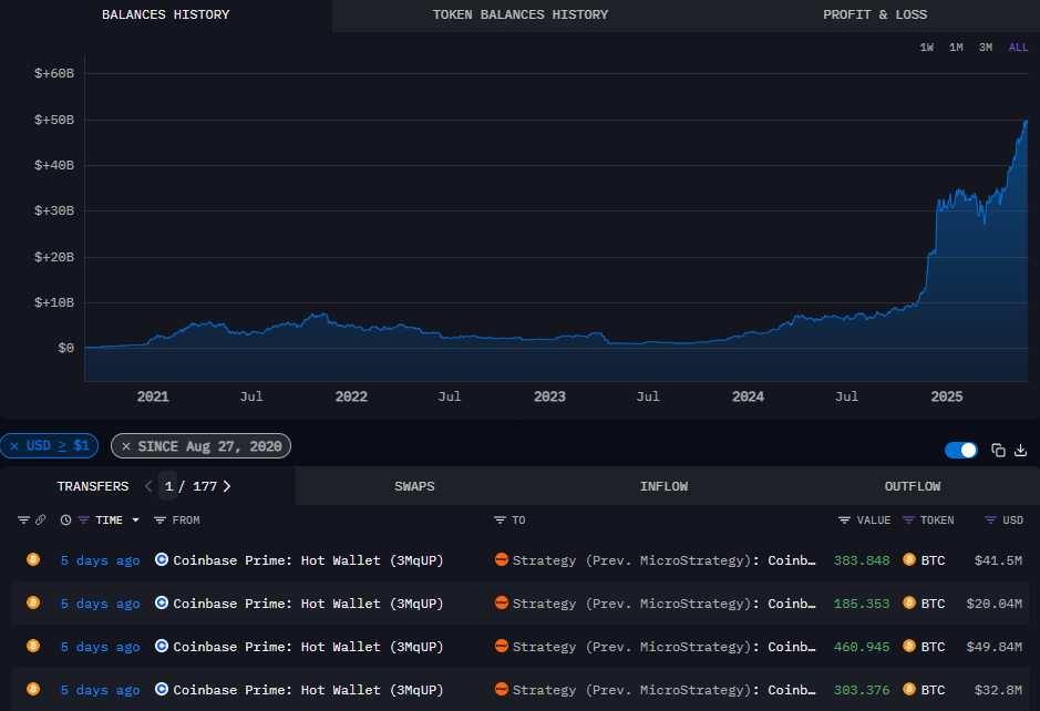 根据 Arkham 的报告,Strategy 在 Coinbase Prime 持有超过 327K BTC,在 Fidelity 钱包中持有高达 107K BTC。