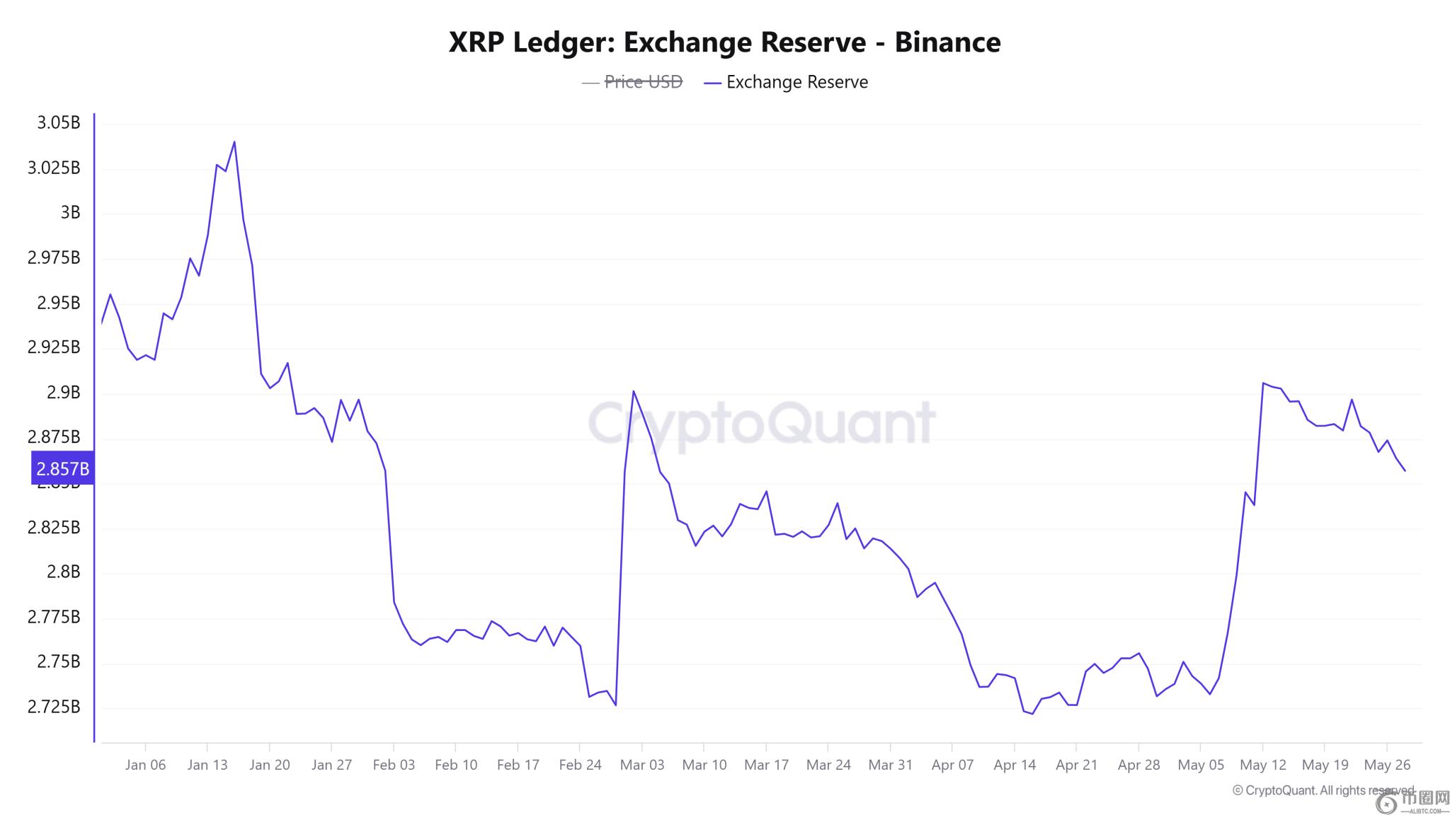 有趣的是,CryptoQuant 的数据显示,交易所(尤其是)的 XRP **数量已经确实看到一滴近来。仅今年一年,币安的XRP储备就减少了8200万个**,从29.39亿个**下降到28.57亿个**。