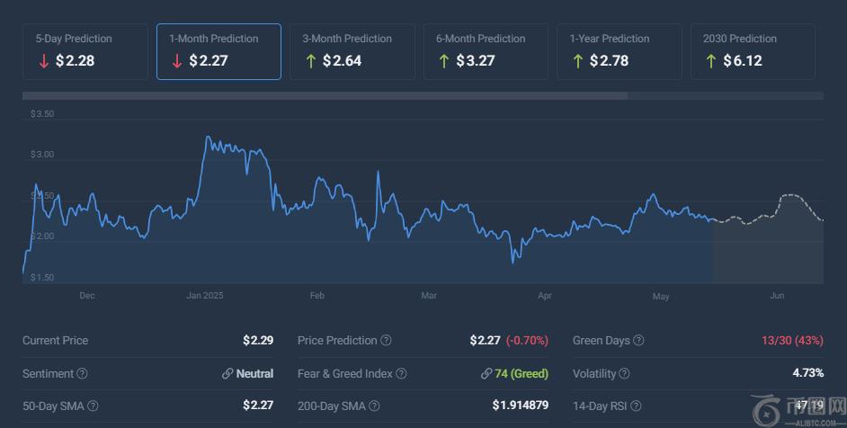 XRP 价格预测图显示,1 个月后预测价格为 2.27 美元,市场情绪看涨 – 资料