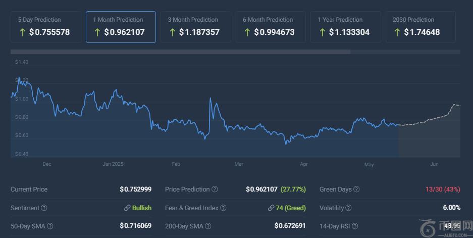 卡尔达诺价格预测显示,1 个月后价格将达到 0.962107 美元,市场看涨情绪高涨,涨幅达 27.77% – 资料