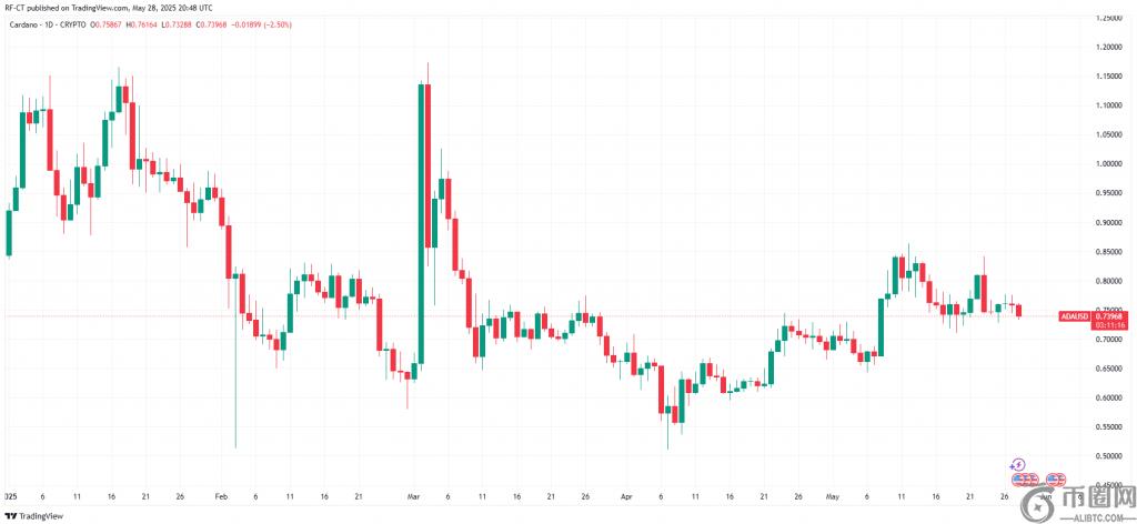 卡尔达诺日线图显示价格为 0.73968 美元,并附有技术指标和市场分析 -