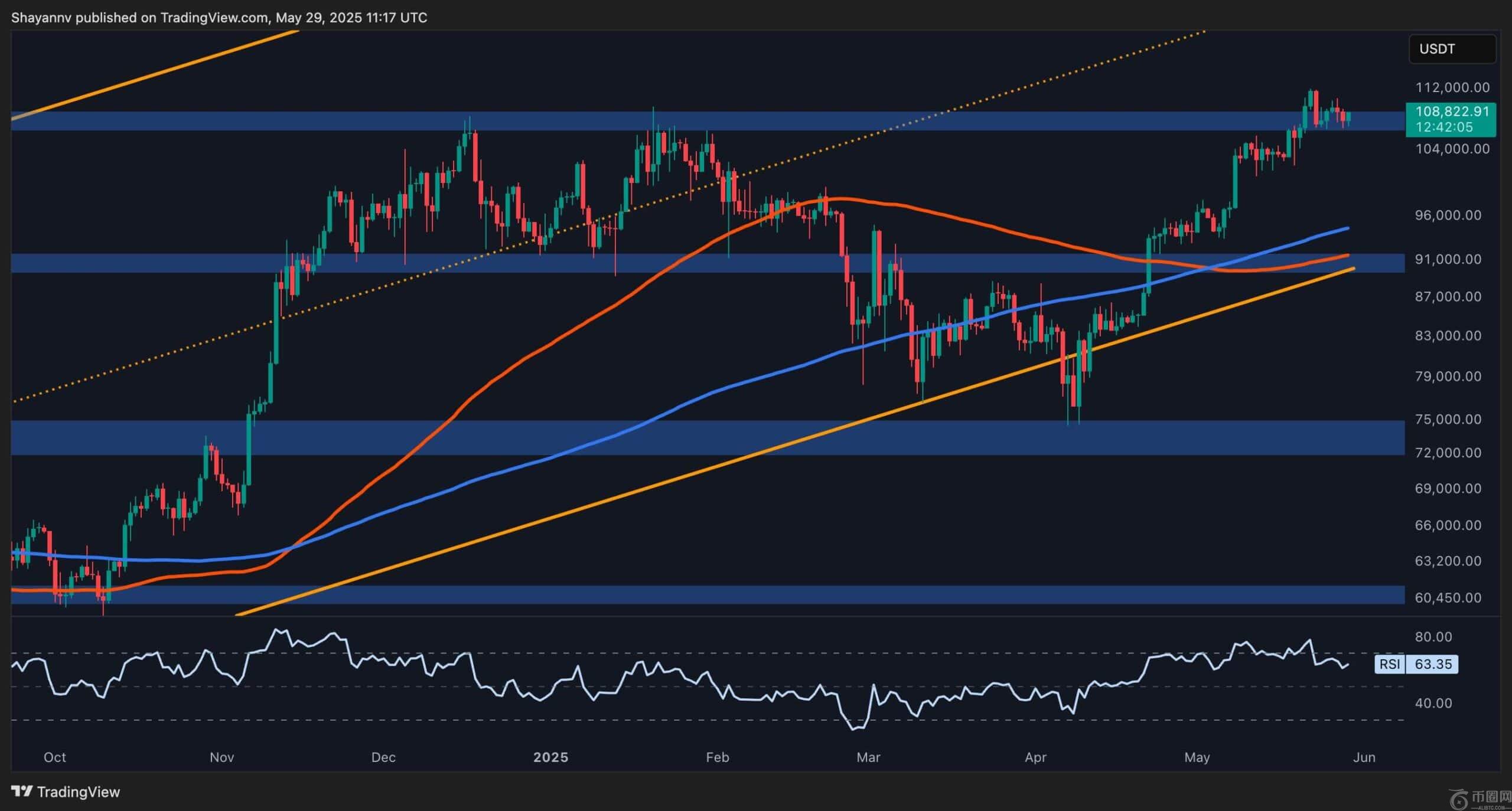 比特币继续维持在10.8万美元左右,在自4月低点大幅反弹后,目前在窄幅区间内盘整。价格走势表明其走势强劲,但势头略有减弱,为未来几天的关键走势奠定了基础。