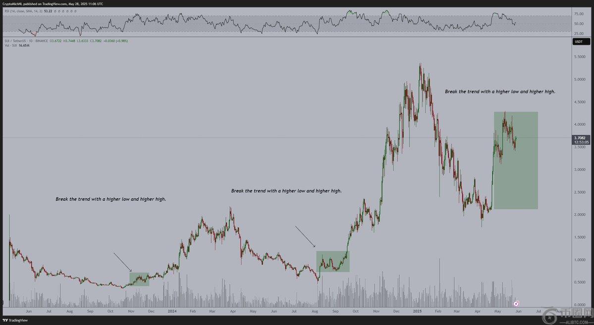 这位交易员总结了他对 Layer-1 区块链和智能合约平台 Sui Network 的分析,说本月早些时候,比特币遭受了数亿美元的黑客攻击,引发了 FUD(恐惧、不确定和怀疑)的笼罩,目前,比特币正在逐渐恢复。