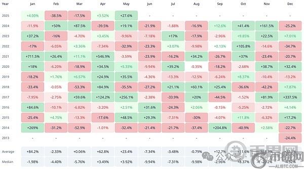 相比之下,4月、11月和12月等其他月份的平均涨幅更大。4月尤为突出,平均涨幅超过60%,而且年底市场也呈现出上涨势头。但6月通常不会出现这样的走势。