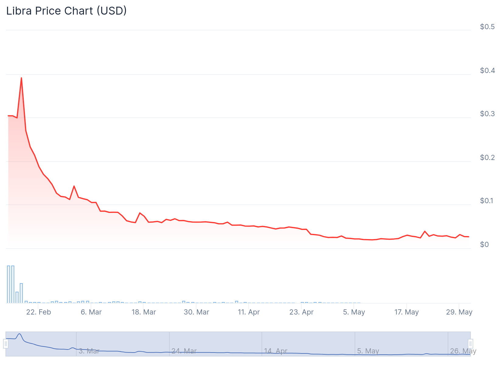 以 LIBRA 为例,该**导致用户损失超过 2.5 亿美元,且自暴跌以来一直未能恢复元气。与其他 meme **不同,LIBRA 已**失去市场信心,即使是非理性的**,交易员也不愿再买入。