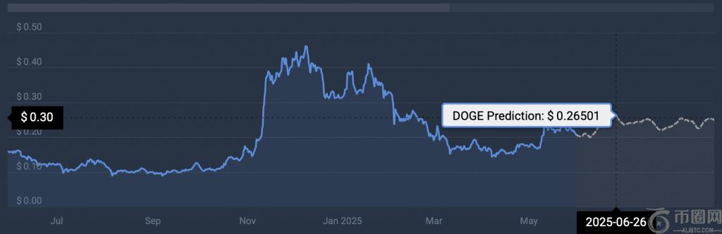 CoinCodex 分析师目前预计狗狗币 (DOGE) 不会大幅上涨。该平台预计该资产将在 6 月 26 日攀升至 0.265 美元。如果狗狗币达到 0.265 美元大关,其涨幅将达到 27.4%。