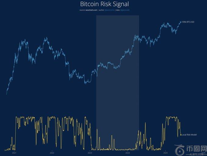 Woo 在社交媒体平台 十 上告诉他的 120 万粉丝,比特币的风险信号呈下降趋势,表明市场风险正在下降。