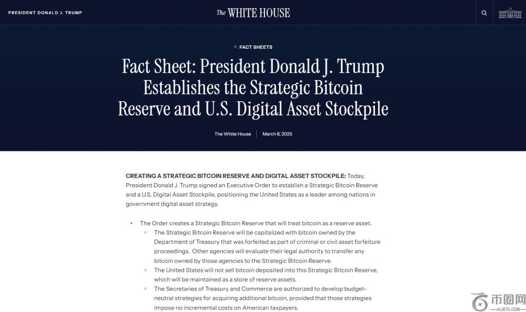 “该命令创建了一个战略比特币储备,将比特币视为储备资产。”