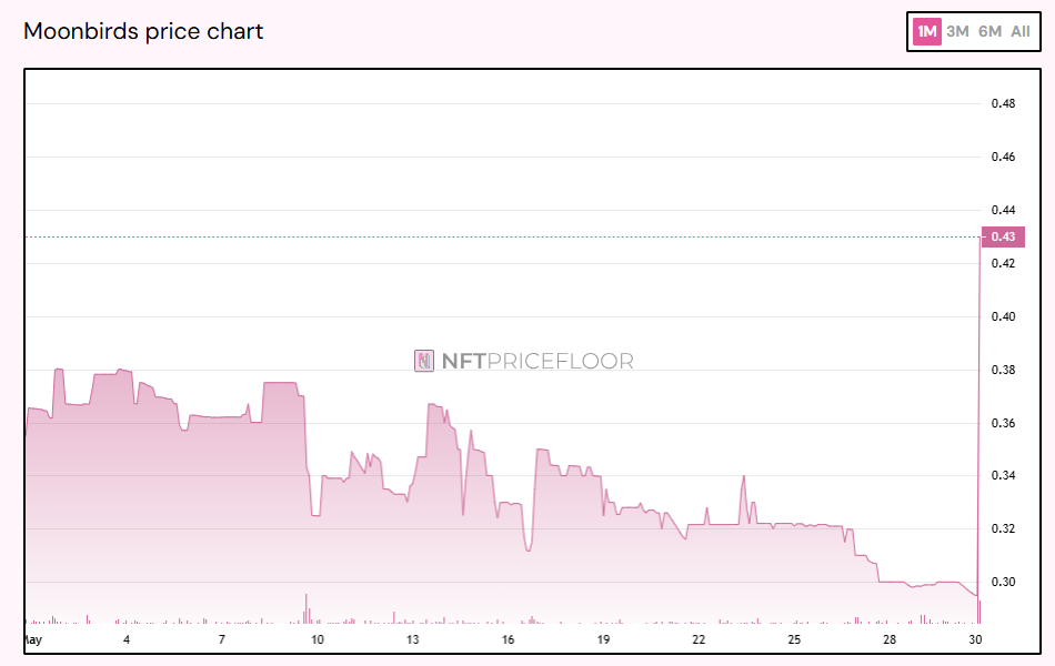 在 IP 出售消息传出后,Moonbirds 的底价上涨至 0.47 ETH。|