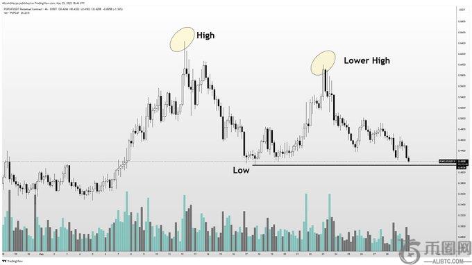 转向 Popcat (爆猫)、夏尔巴人说Solana 中构建的 memecoin(SOL) 生态系统是处于“危险区域”的山寨币之一。根据 Sherpa 绘制的 POPCAT 四小时图表,在形成看跌的较低高点后,模因币 (memecoin) 有可能跌破关键支撑区域。