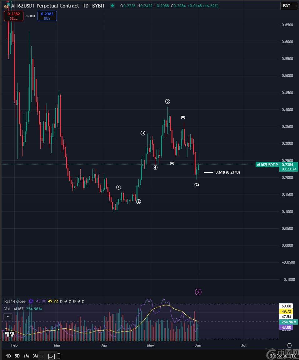 该分析师还看好以人工智能 (AI) 为**的加密项目 ai16z (AI16Z)。据 Bluntz 称,该山寨币似乎**的日线图上出现 ABC 修正,表明该货币已形成**底部。