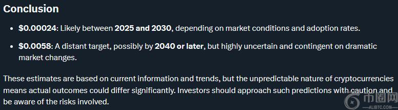一些机构认为,在有利的市场条件下,柴犬股价**可能突破 0.00024 美元和 0.0058 美元大关。因此,我们汇总了各位专家对这些预测何时可能实现的看法。