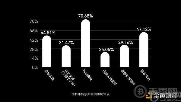 此外,用户已从投机交易思维转变成长期资产保管思维,在受访群体中,70.68% 的加密用户担忧私钥丢失,47.12% 用户惧怕黑客攻击,价格波动在传承计划的风险因素中排行第三(44.81%)。随着比特币成熟度提升和波动率趋稳,价格波动在传承风险中的排序已降至第三位。这表明,在有传承意愿的群体中,价格的波动已不再是首要顾虑,安全性正成为关注核心。