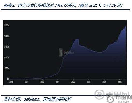 在美国资本市场,稳定币将助力打通传统金融与加密货币市场。USDC稳定币发行商 Circle IPO或许将成为美国稳定币法案《GENIUS Act》通过后的**个标志性事件,截至6月2日,Circle 披露纽交所 IPO 上市申请**进展,**估值上限72亿美元;贝莱德计划认购 CircleIPO 10% 的股份。这是一个典型案例,即在稳定币攻城略地的势头下,传统资本市场与加密货币市场将深度融合——稳定币将从传统资本市场吸收更多金融流量,而稳定币发行商亦从传统资本市场获取更多的融资能力。