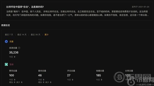 2021 年 1 月,我曾在知乎专栏发表一篇名为《比特币在**很“合法”,这是真的吗?》的文章,收获了超过 3.5 万次阅读、100 个赞、上百次转发与近 200 次收藏。这些数据背后,正是人们长期以来对这种“顺民式”疑惑的真实写照。