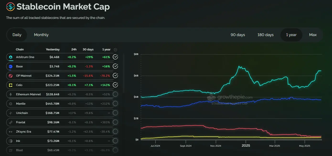 稳定币重返 Arbitrum,它是 DeFi 领域最活跃的 L2 链之一。|
