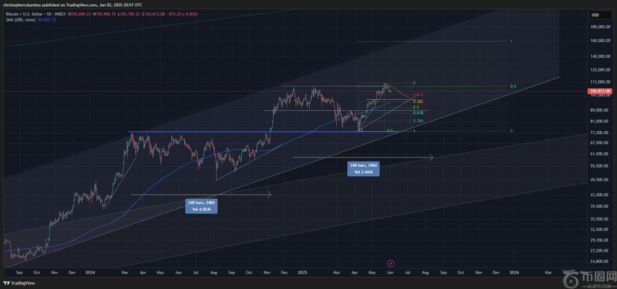 **,分析师股份每日比特币图表显示,BTC 正在重复类似 2024 年的模式,即在**范围内盘整,然后突破至历史新高。