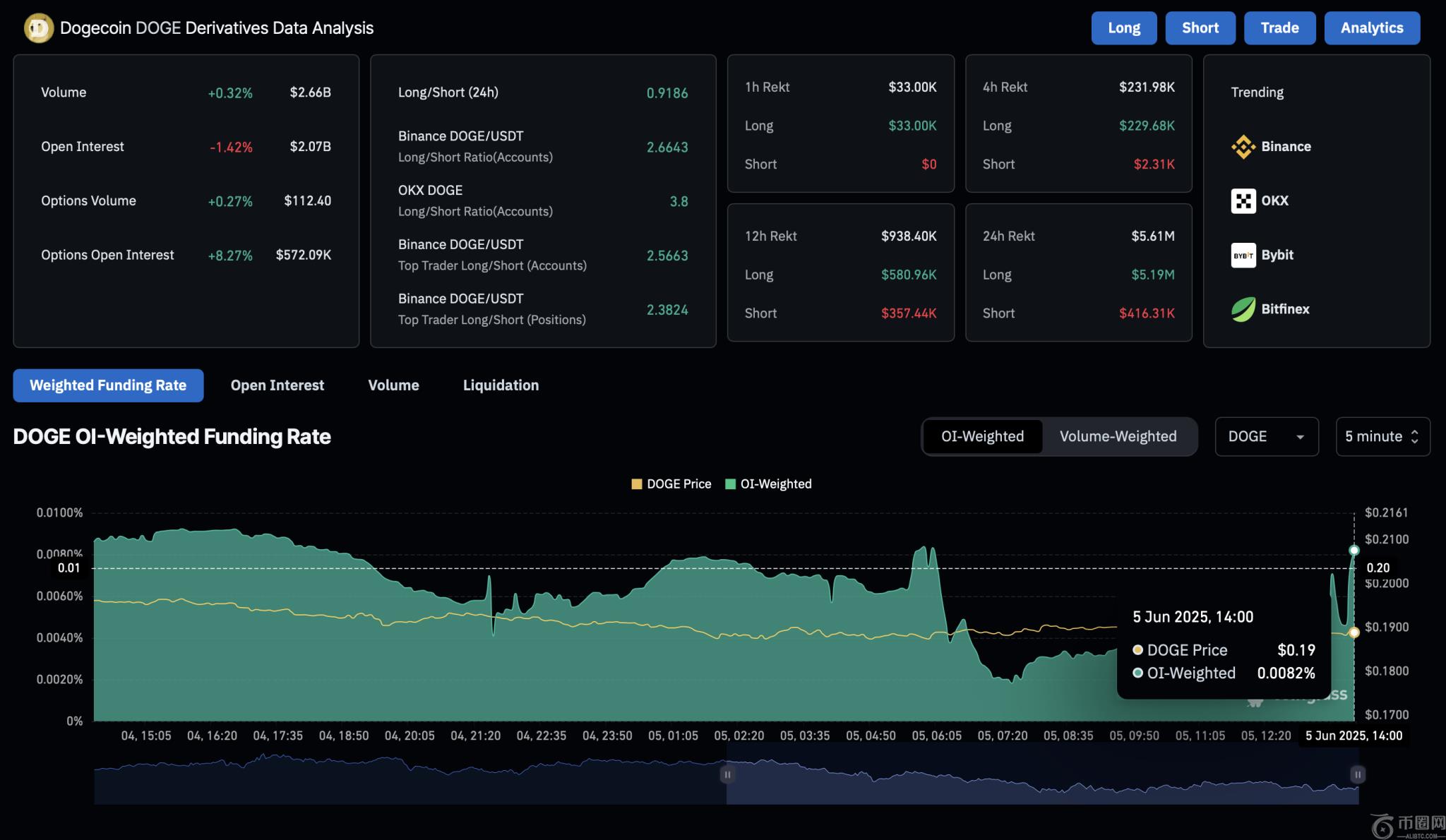 DOGE Cross 多头清算,价值 500 万美元