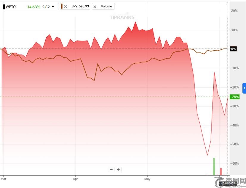 Webus International 股票与标准普尔 500 指数的比较 – 资料