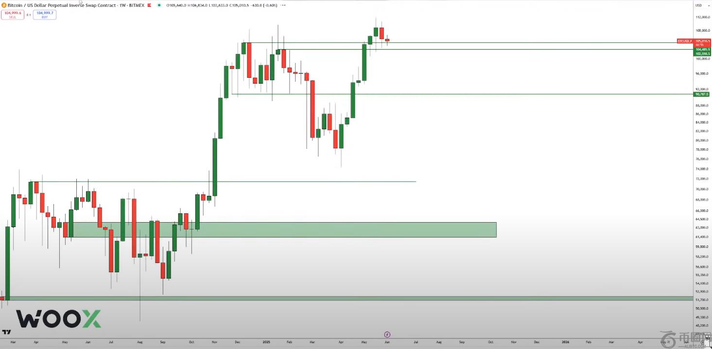 这位匿名交易员表示,比特币上个月底上涨至111,800美元左右的历史新高,根据日线图来看,是一次“假突破”。DonAlt认为,“好的突破”通常不会重新测试之前的支撑位。