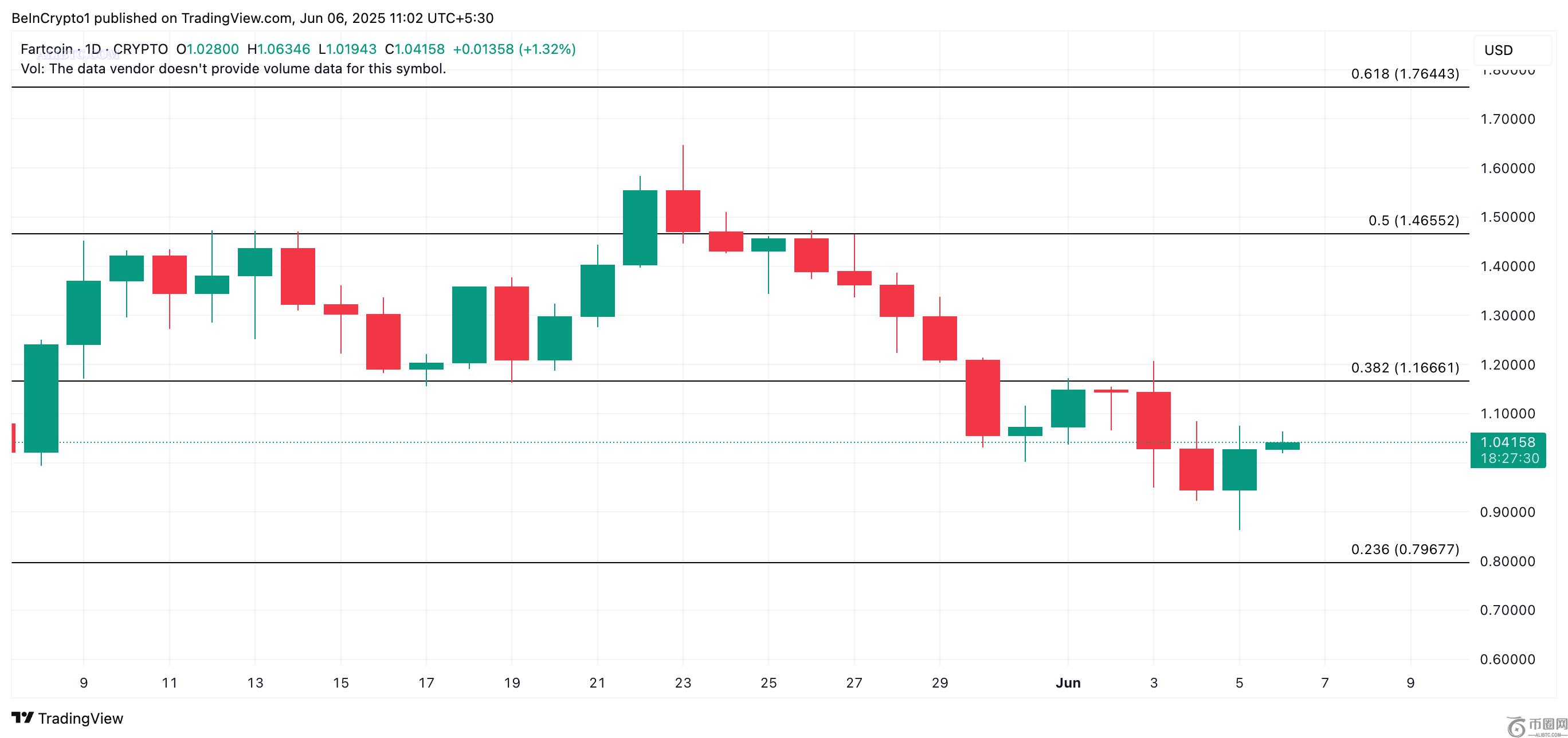截至发稿时,FARTCOIN 的交易价格为 1.04 美元。如果当前的买盘势头持续,该山寨币有望突破 1.16 美元的阻力位,并由此确立新的支撑位。成功突破后,FARTCOIN 或将迎来持续上涨,目标价位为 1.46 美元。