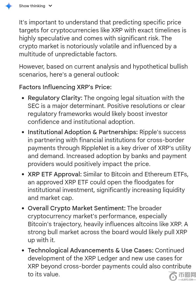 Gemini 还强调了更广泛的加密市场趋势、XRP 账本日益增长的实用性以及全球经济状况等重要因素。