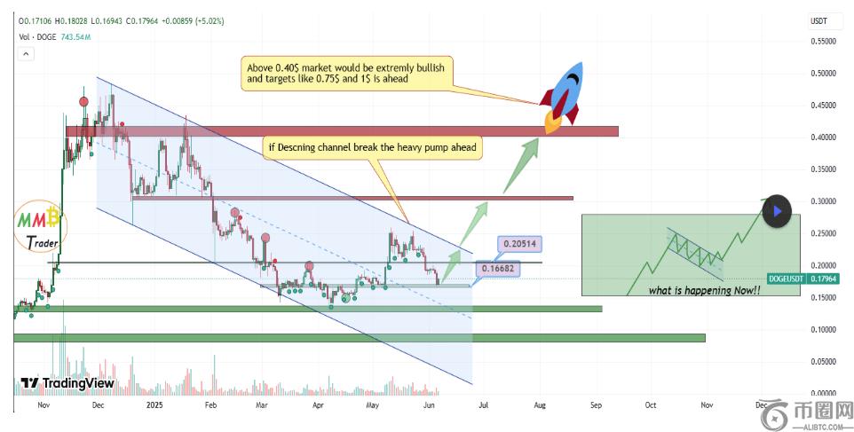 0.17美元的价格这一点对于狗狗币来说意义重大因为它是下降通道内的每日支撑位,自 2024 年 12 月以来一直在抑制 meme 币的价格走势。
