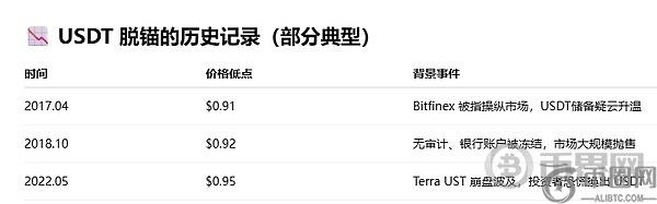 历史上USDT因为路子比较野,比较大厉害的脱锚一共出现了三次:
