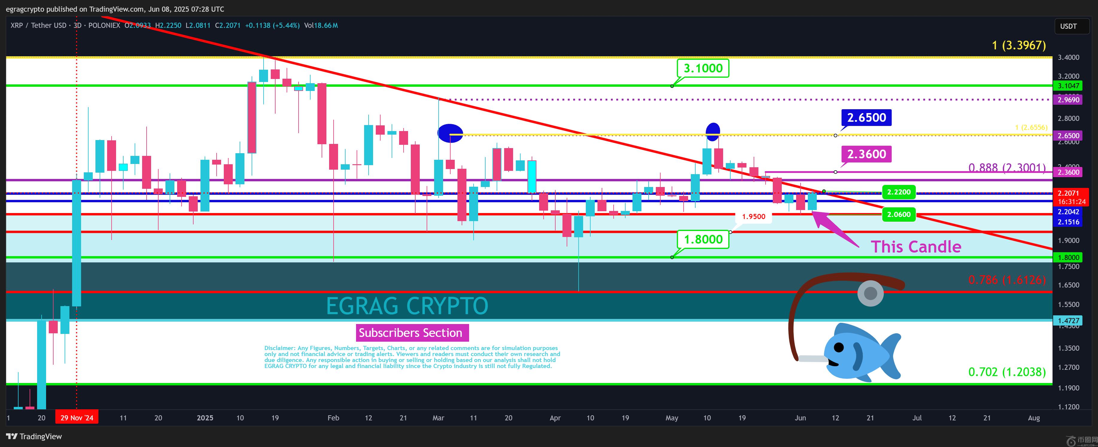 根据分析师图表近几个月来,XRP 价格面临巨大阻力,下行趋势线成为关键阻力。尽管多次尝试,但价格仍未能维持在该水平之上,导致市场进入一段盘整期。
