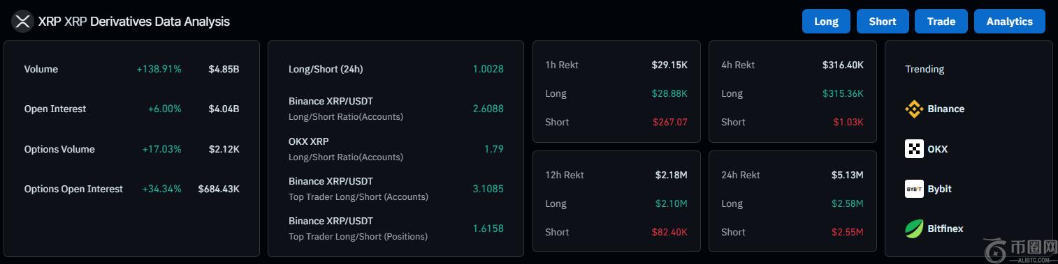 与此同时,当前市场情绪围绕XRP显示出一些令人鼓舞的迹象,尤其是在交易量和未平仓合约方面。XRP 的衍生品数据一直在改善,衍生品交易量增长了 138%,未平仓合约增长了 6%。