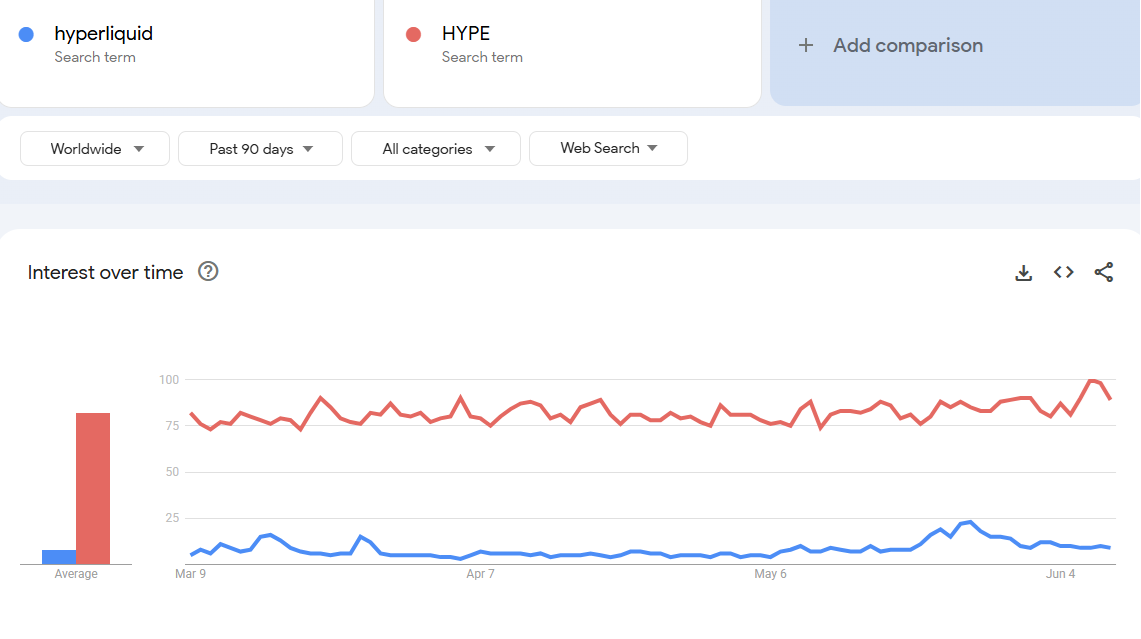 尽管人们对 HYPE 的兴趣略有上升,但 Google 上的 Hyperliquid 搜索速度有所放缓。