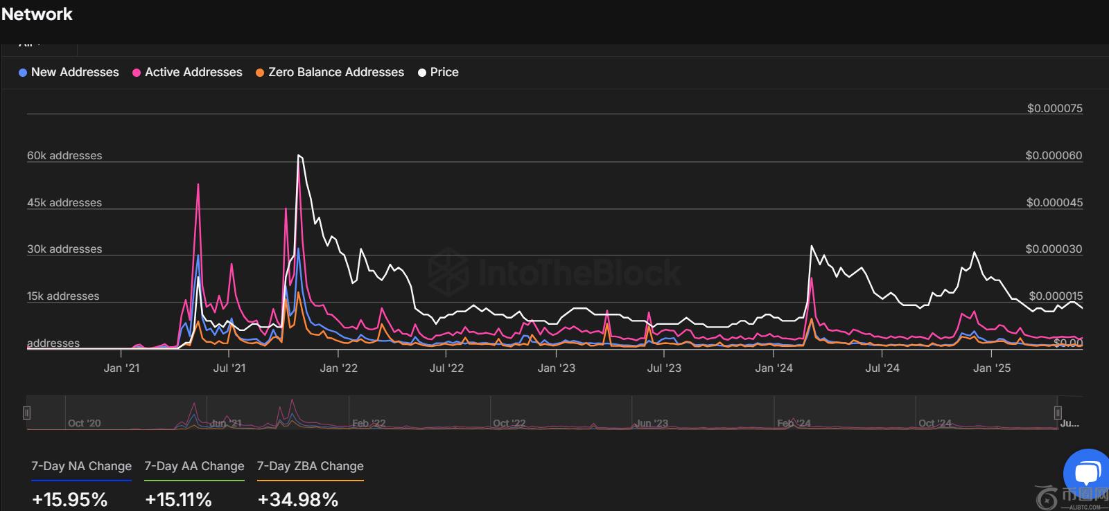 与价格走势同步,Shiba Inu 网络上的地址活动也呈现出令人鼓舞的迹象。最近 7 天的变化表明参与度激增,新地址增加了 15.95%,活跃地址增加了 15.11%,零余额地址增加了 34.98%。