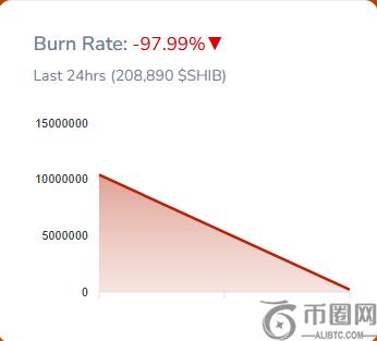 尽管引入了实时自动销毁机制,Shiba Inu 的销毁率仍大幅下降,过去一天暴跌 97.99%,至 208,890 SHIB。这意味着过去 24 小时内销毁的**数量与前一天相比有所减少。