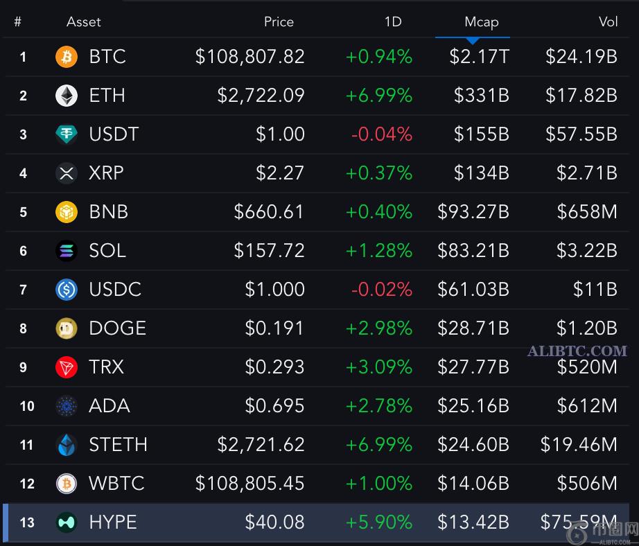 现在,HYPE 已巩固了其作为市值前 10 加密资产的地位(不包括稳定币和包装**),估值为 134 亿美元。这一大幅上涨表明其影响力日益增强,并使其成为币安上市的**竞争者,尤其是考虑到它已经在币安美国交易所上市。