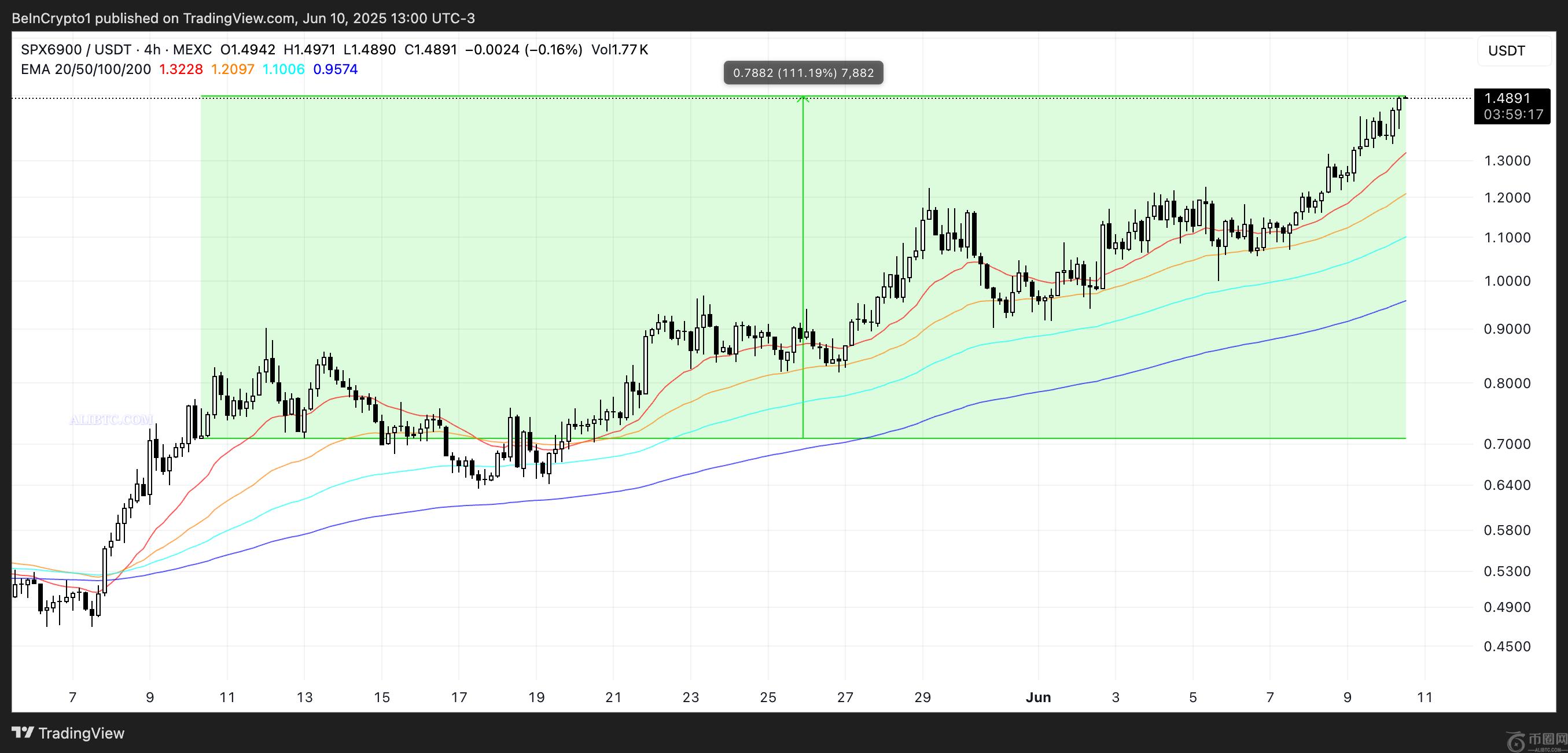 目前 SPX6900 的交易价格接近之前的历史高点 1.55 美元,看起来很快就会测试并可能突破该水平。