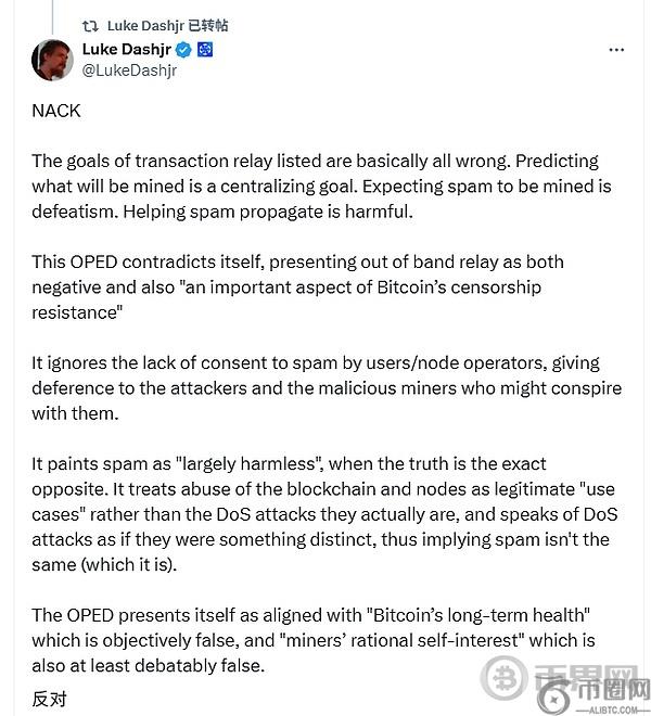 极**认为,铭文就是垃圾交易,应该杜绝,比特币不应该成为存储链。