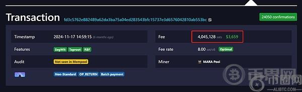 我看了那个7M 的超大卡 BUG OP-Return 区块,发送这个交易的人居然花掉了 3600 美金的手续费。