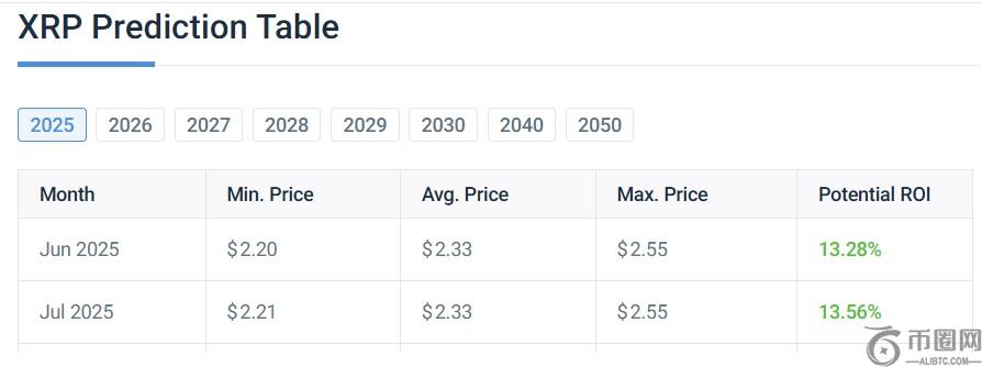 **的链上指标和价格预测公司CoinCodex在纳斯达克加密货币指数纳入后,瑞波币(XRP)的前景一片光明。根据价格预测,该分析公司预计瑞波币将在6月和7月达到2.55美元的高点。相比目前2.25美元的价格,这一价格上涨了约14%,投资回报率(ROI)也随之上升。