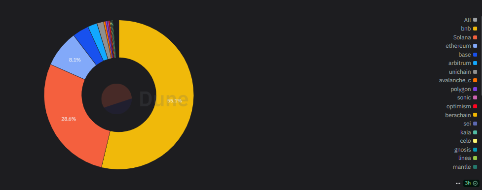 BNB 智能链仍然占据链上活动的绝大部分份额。|