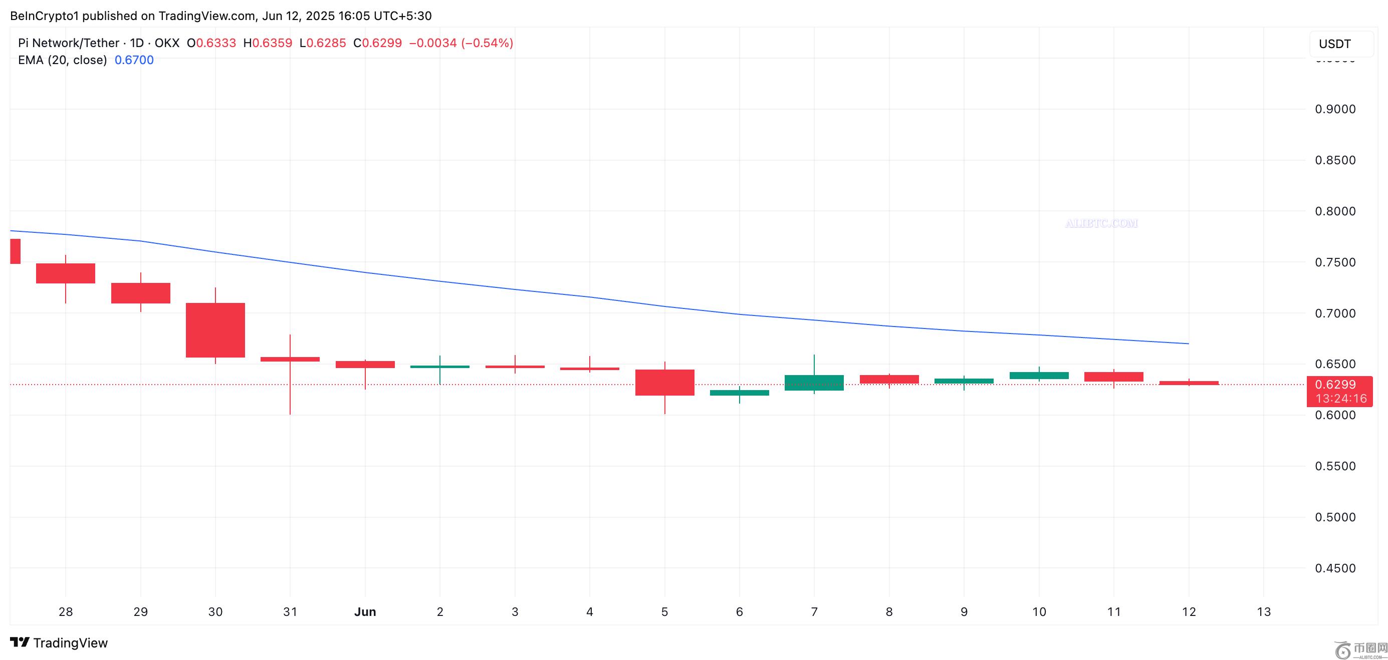 Pi Network 的原生**自 6 月 7 日以来一直横盘整理,此前已连续数周下跌。当前的价格走势反映了买卖双方之间的拉锯战,双方都缺乏足够的信心来引发突破。