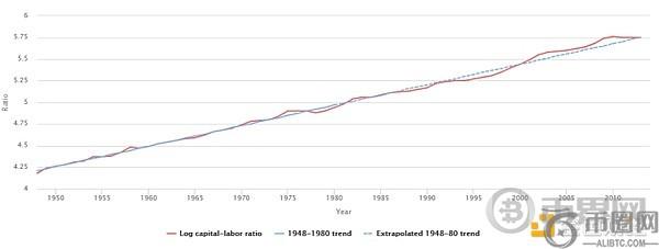 图2:1948-2013年美国对数资本-劳动比率