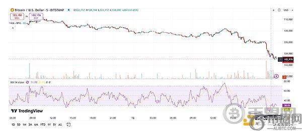 今天凌晨开始,以色列伊朗爆发地区冲突。TradingView数据显示,在以色列空袭德黑兰后,比特币周五早盘下跌 5% 至 102,900 美元。由于紧张局势加剧,投资者寻求更安全的资产,现货黄金则因避险而飙升至 3,429 美元。