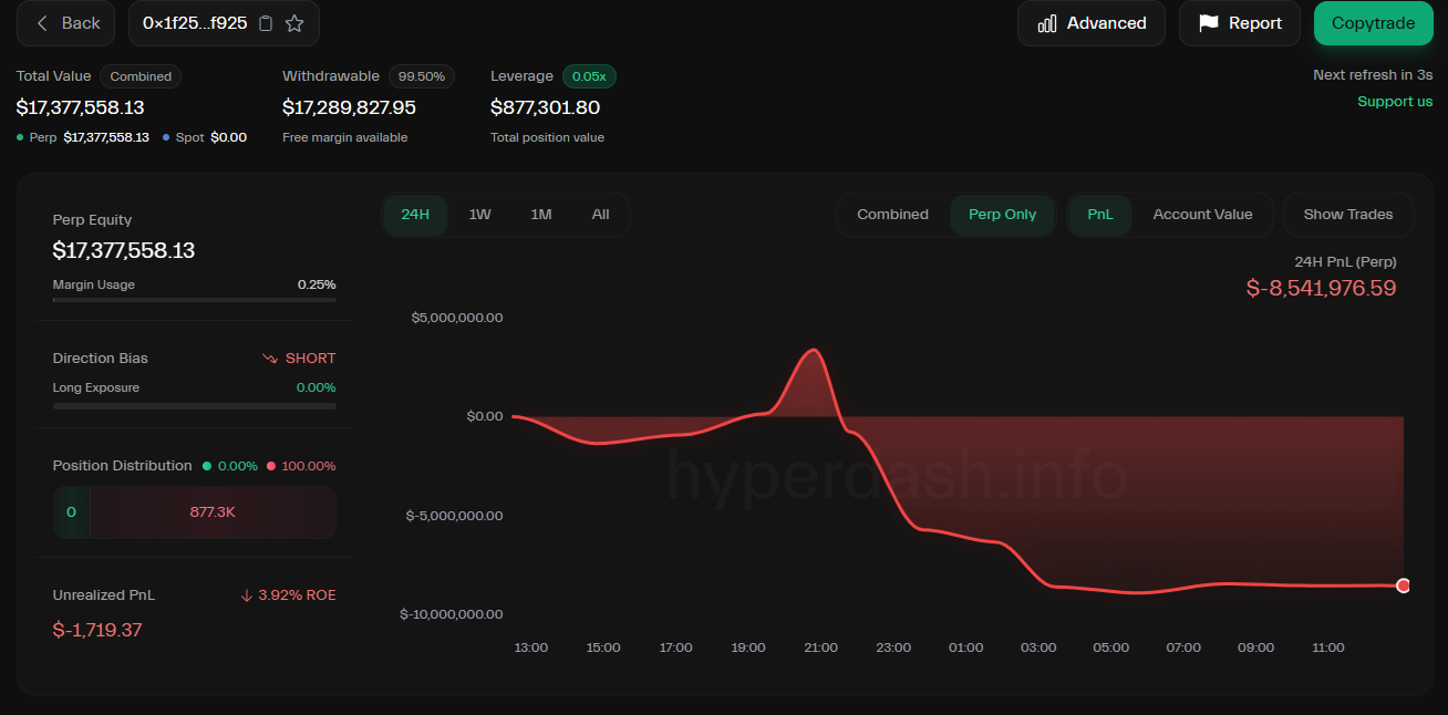 另一位备受关注的 超液体 巨鲸因多头仓位而遭受损失。这位巨鲸被认为是加密货币领域最有经验的交易员之一,他以 20 倍杠杆转为空头仓位。