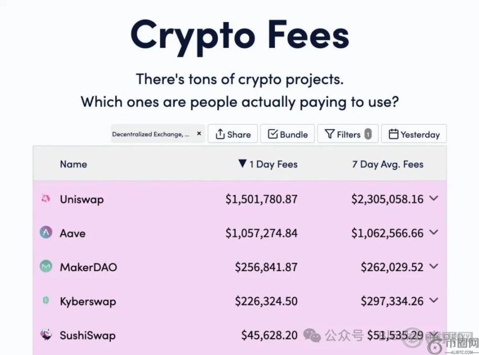注:值得注意的是,截至目前,cryptofees 未获取 Solana 的数据。