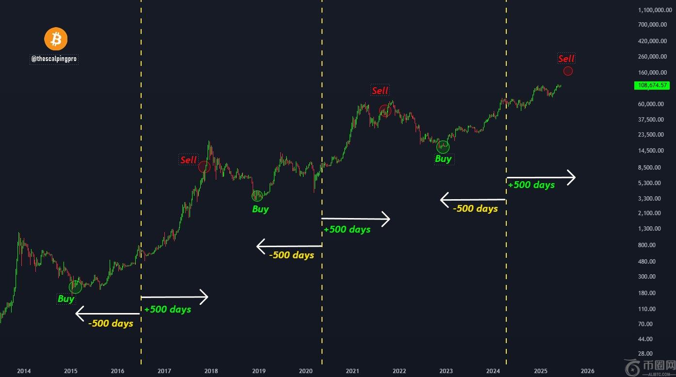 Mags 建议,想要**把握市场时机的投资者应该在下一次减半预计发生前 500 天购买比特币。此后,他们应该继续持有比特币,什么也不做。与此同时,Mags 建议,一旦减半发生 500 天后他们卖的减掉他们的**。然后他们可以在下一次减半之前重复这个过程。