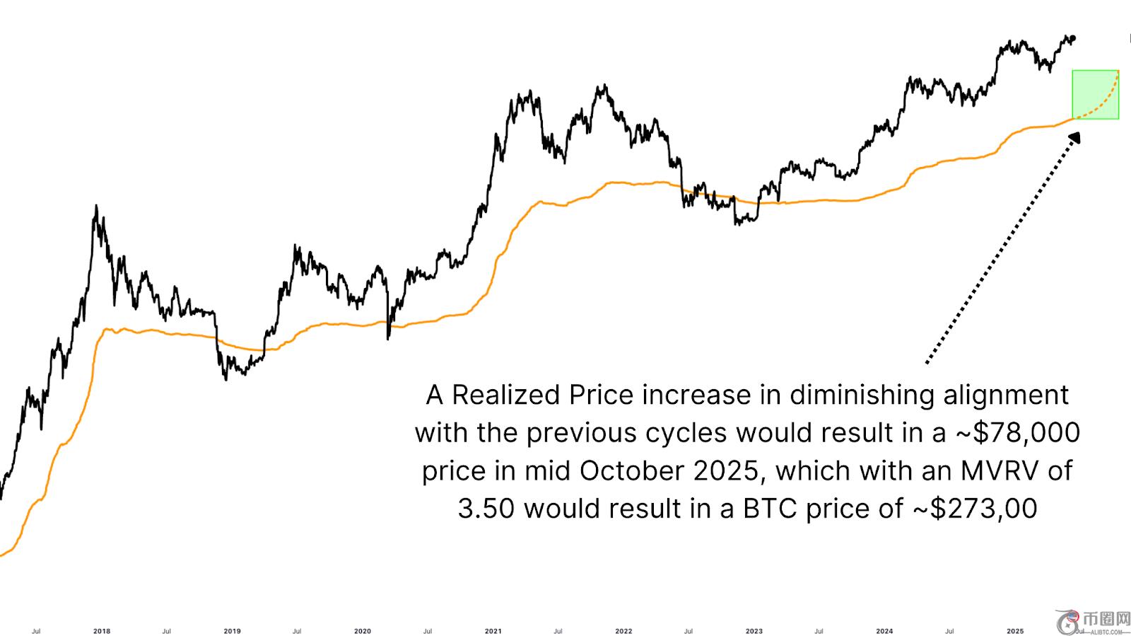 图 4:结合预计实现价格和可能的 MVRV 目标来预测本周期的峰值。