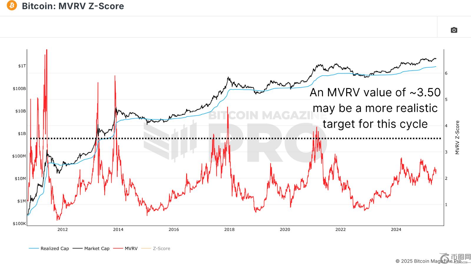 图 2:MVRV 比率预测进一步的周期增长将达到历史 4 甚至更为保守的 3.5 目标值。